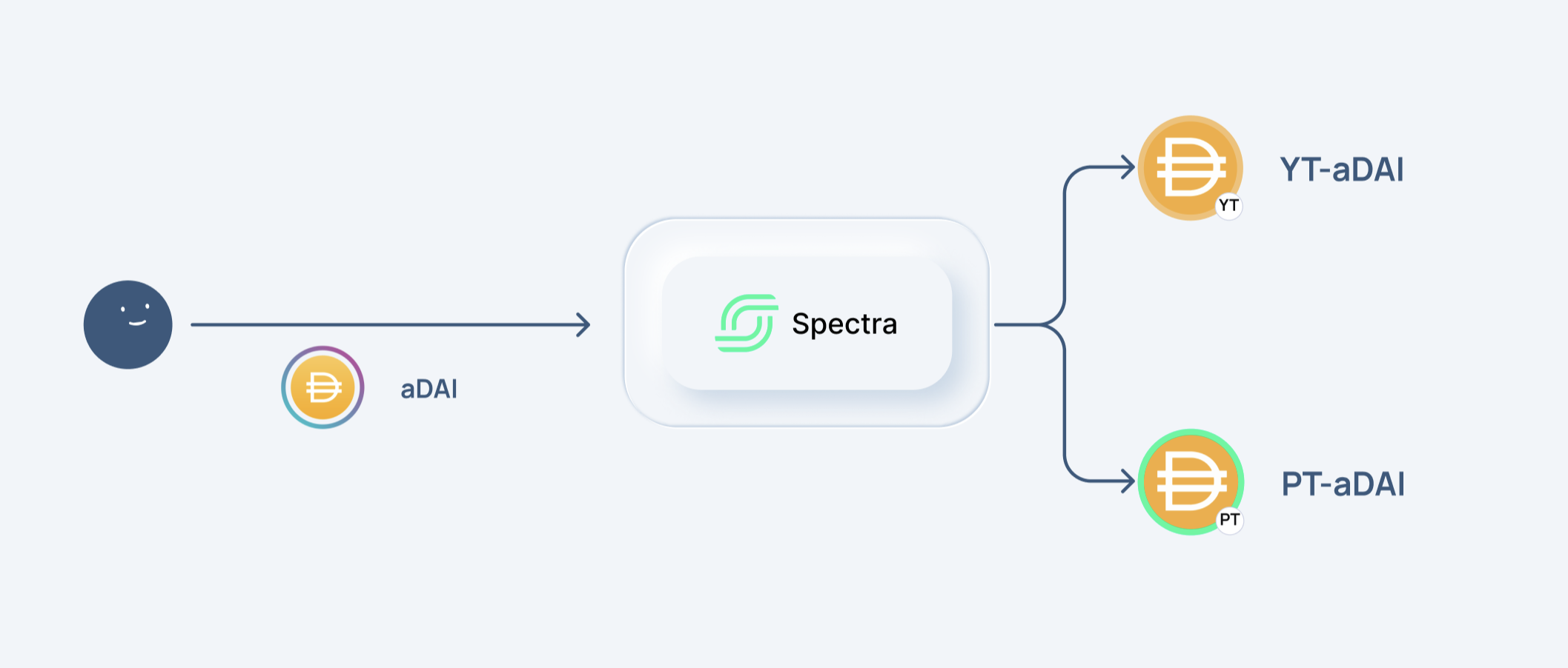 3. Spectra splits Aave's aDAI into Principal Token (PT-aDAI) and Yield Token (YT-aDAI).
